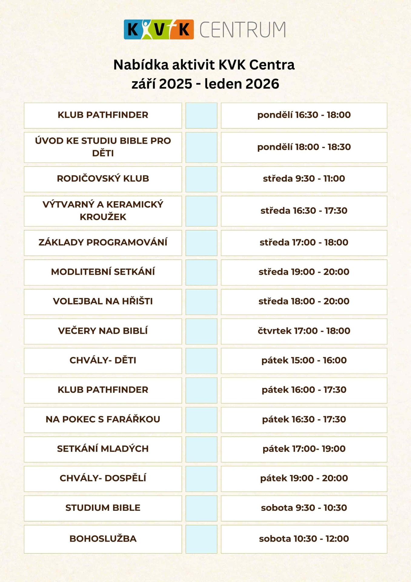 Pravidelné aktivity v KVK Centru