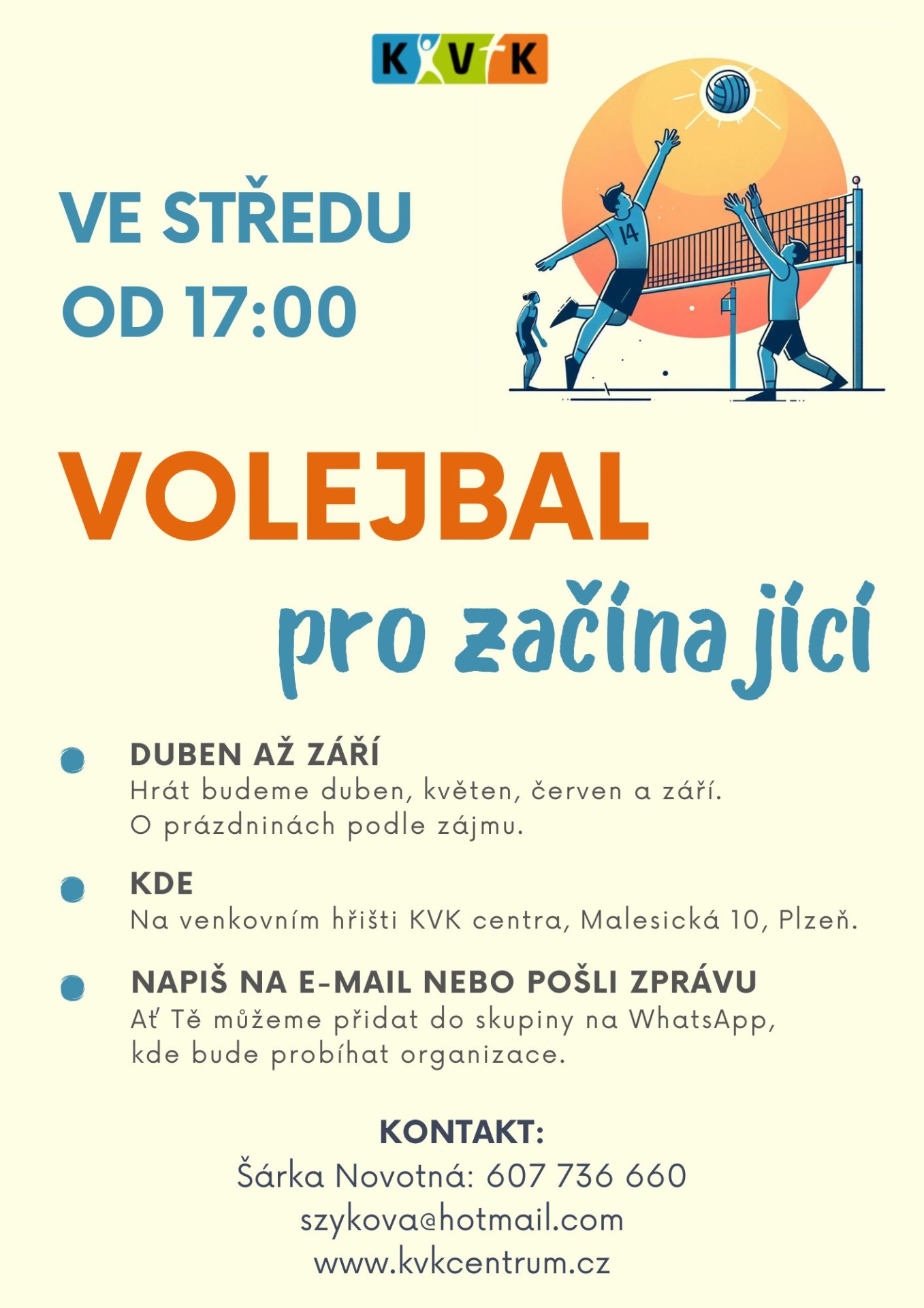 Přátelský volejbalový turnaj na hřišti KVK Centra v Plzni Skvrňanech. Předpokládaná účast 4 týmů amatérských hráčů volejbalu.